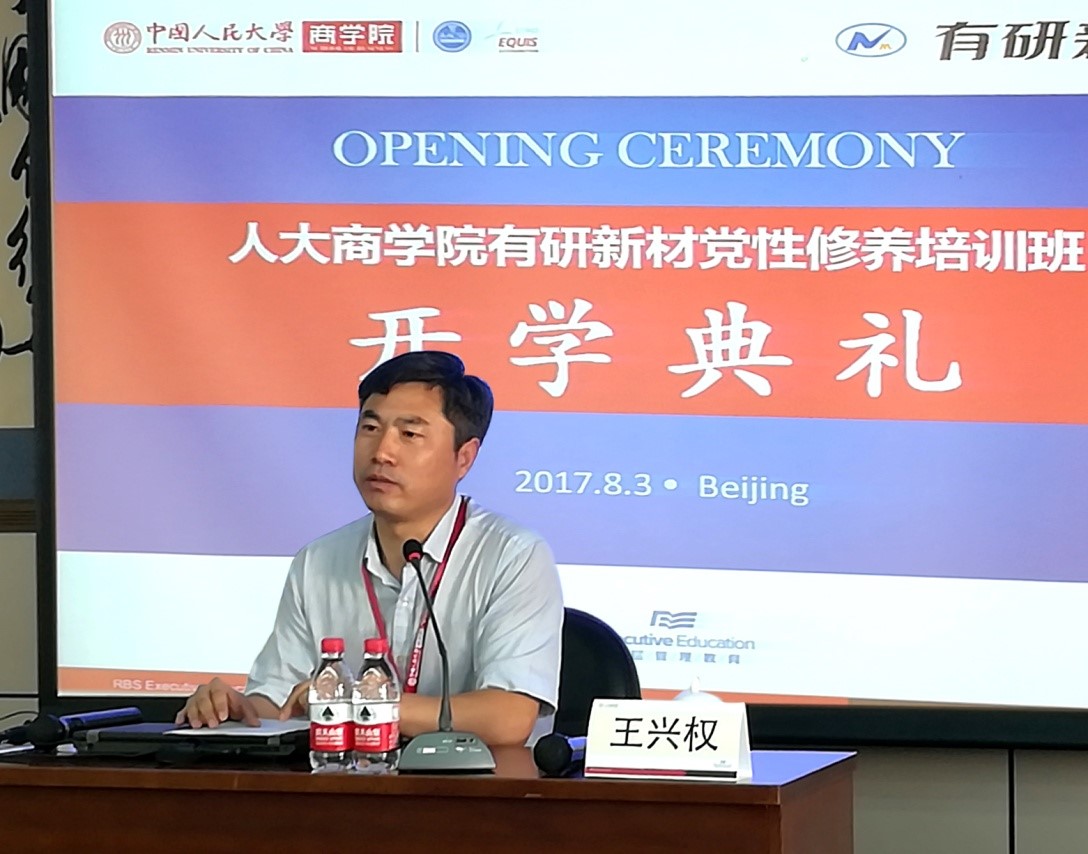 王兴权要求各位学员严格遵守培训纪律规定,切实转变角色,时刻保持恭卑心态、认真听讲,深入领会,做到“放空自我、充实自我、优化自我”。