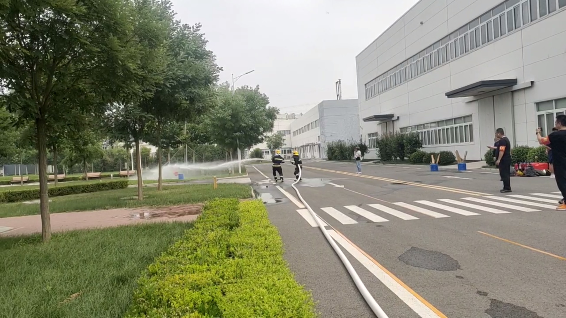消防服着装及室外消火栓水带连接水柱打靶