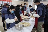 在这个欢庆的日子里,有研稀土在职工食堂举办包饺子活动,自己动手做一顿团圆饭。公司高管、首席专家以及公司各部门近50名包饺子好手一齐动手,一边拌馅儿、擀面皮、包饺子,一边总结过去、畅想未来。一个个饺子在欢声笑语中诞生。