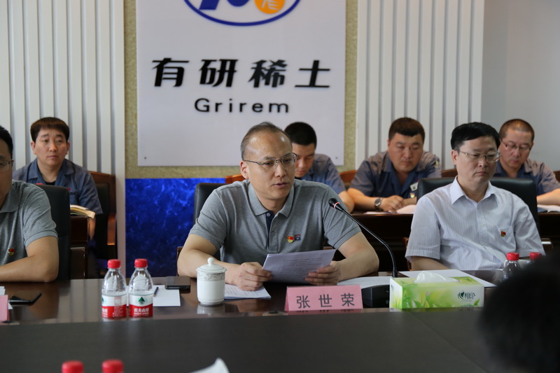 有研集团党委副书记张世荣同志代表集团党委发表讲话。他强调,有研稀土(荣成)党支部要认真贯彻党中央决策部署,落实集团第十次党代会和科技创新大会、人才工作会议精神。同时,他对支部提出三点要求:一要提高政治站位,强化理论武装;二要筑牢“三基”工程,提高党建工作基础;三要推进强化市场化意识,全面深化市场化改革。他希望有研稀土(荣成)党支部能够坚持新发展理念,奋发有为、砥砺奋进,做出更大贡献。