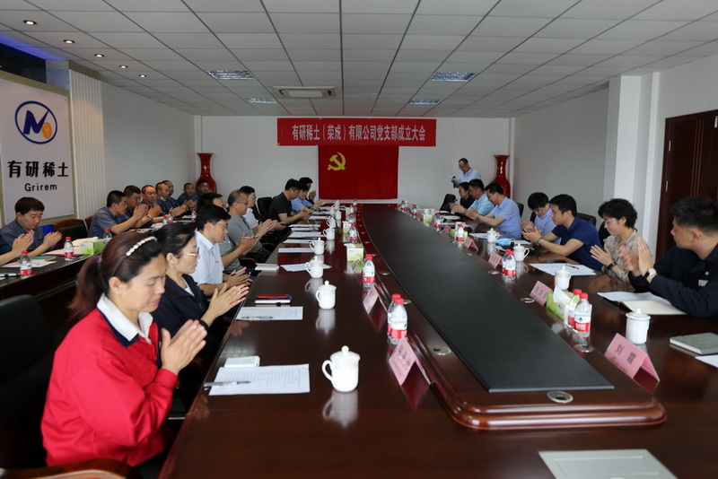2020年6月9日上午9点,在庄严的国歌声中,有研稀土(荣成)有限公司党支部成立大会隆重召开。有研科技集团有限公司党委副书记张世荣,有研科技集团有限公司党委委员、副总经理李彦利,BEATS365官网党委书记、总经理王兴权,BEATS365官网副总经理、有研稀土新材料股份有限公司党总支书记、总经理于敦波,荣成市委组织部副部长王志刚,人和镇党委书记王军强,朱口集团有限公司党委书记陈义出席了大会,共同见证了这一重要时刻。会议由有研稀土(荣成)党支部书记、总经理马跃华主持。